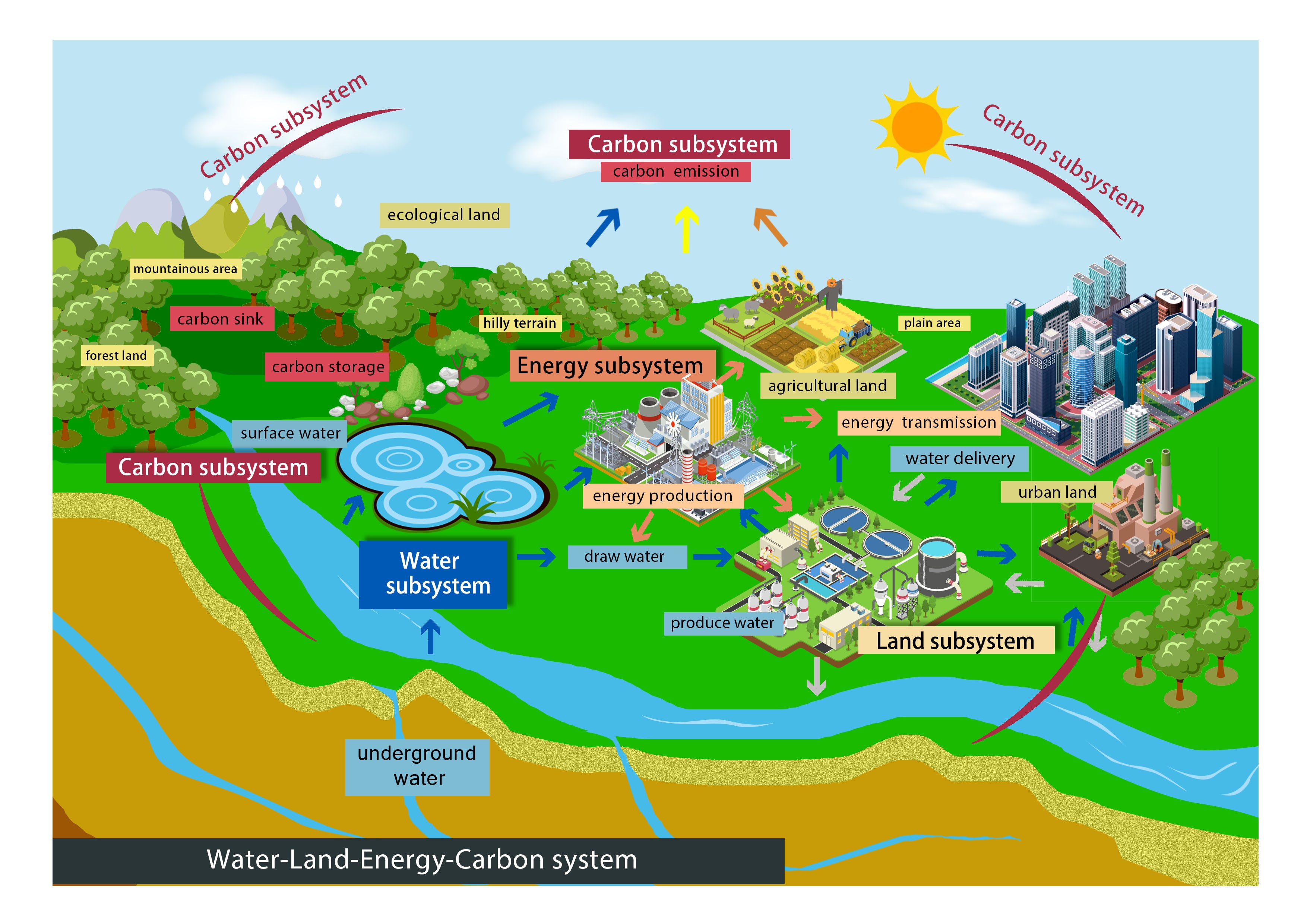 水-土-能源-碳(WLEC)系统框架